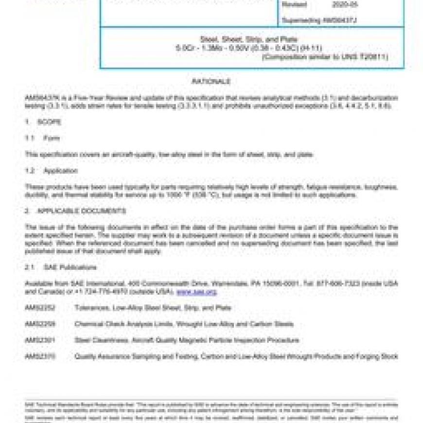 SAE AMS6437K Steel, Sheet, Strip, and Plate 5.0Cr - 1.3Mo - 0.50V (0.38 - 0.43C) (H-11)