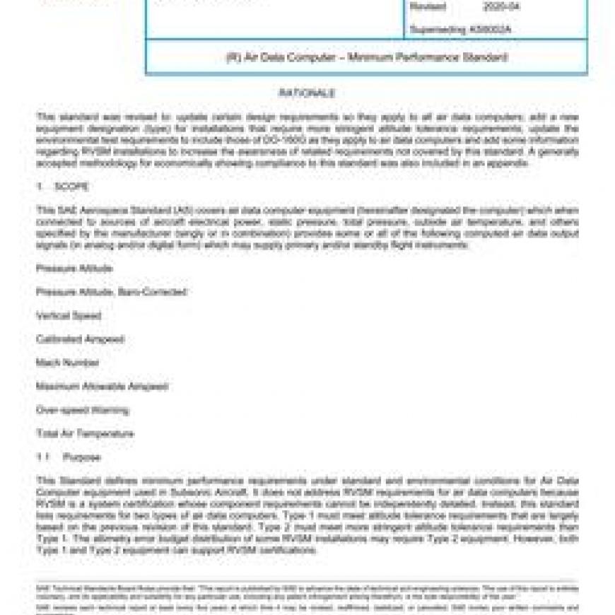 SAE AS8002B Air Data Computer ¿¿¿ Minimum Performance Standard