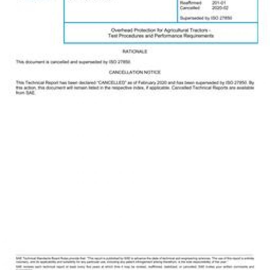 SAE J167_202002 Overhead Protection for Agricultural Tractors - Test Procedures and Performance Requirements