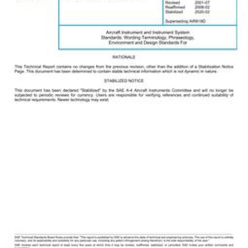 Aircraft Instrument and Instrument System Standards: Wording Terminology, Phraseology, Environment and Design Standards For (Stabilized: Feb 2020)