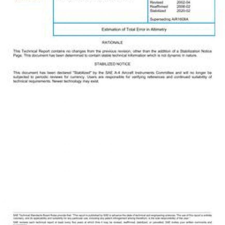 SAE AIR1608B Estimation of Total Error in Altimetry (Stabilized: Feb 2020)
