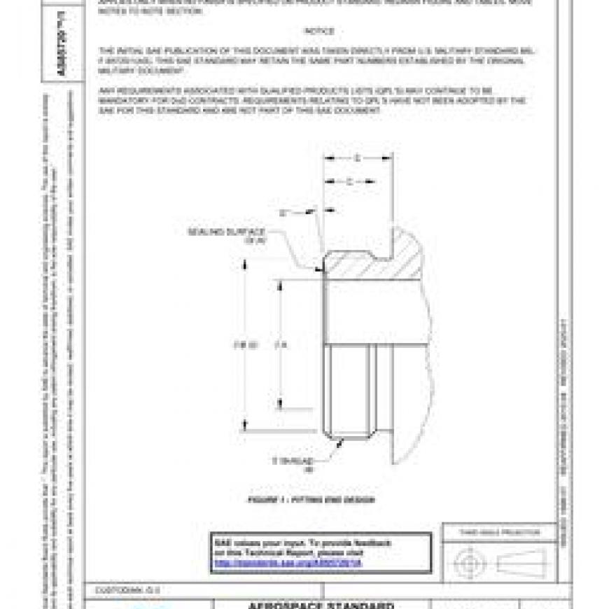 SAE AS85720/1A FITTINGS, TUBE, FLUID SYSTEMS, SEPARABLE, HIGH PRESSURE, DYNAMIC BEAM SEAL, DESIGN STANDARD FOR MALE END
