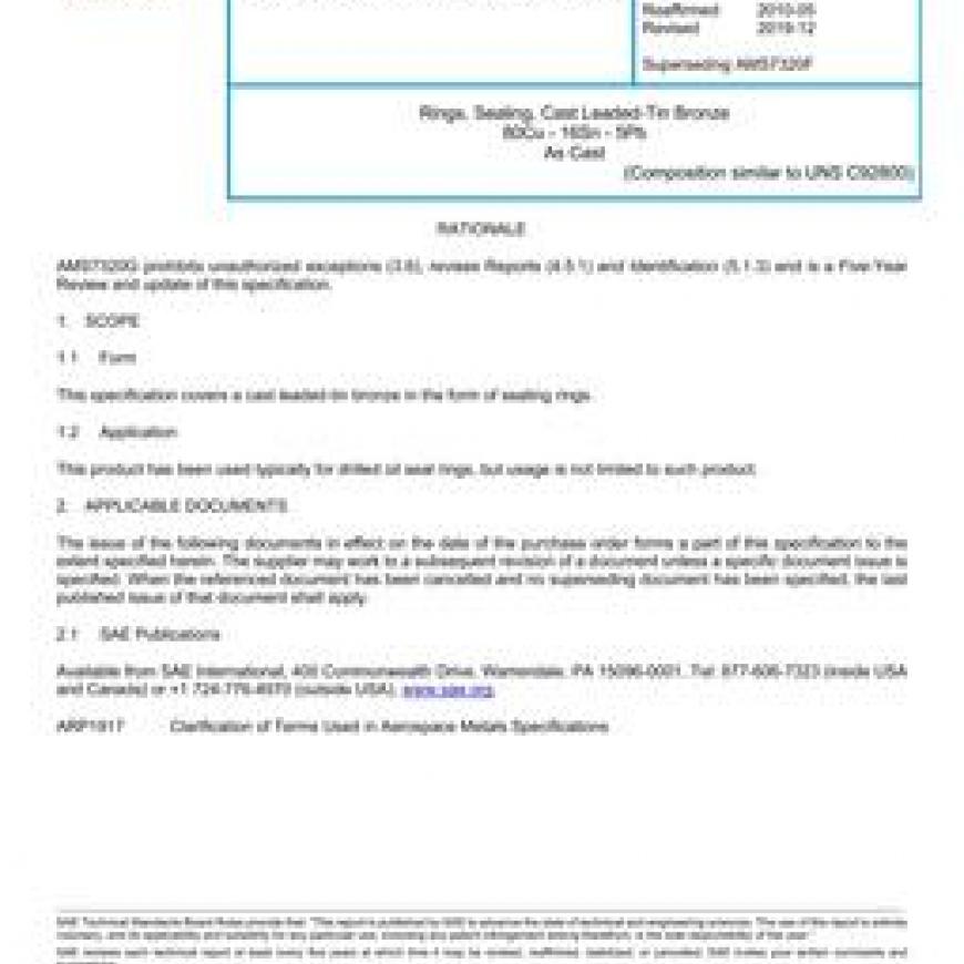 SAE AMS7320G Rings, Sealing, Cast Leaded-Tin Bronze 80Cu - 16Sn - 5Pb As Cast