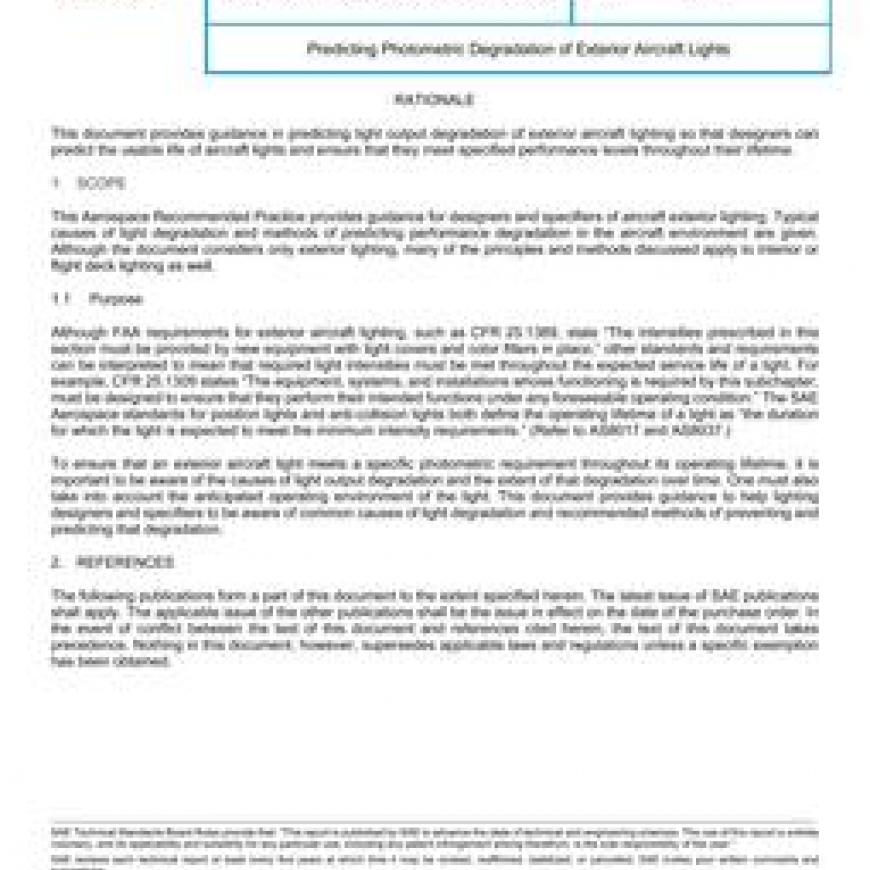 SAE ARP6621 Predicting Photometric Degradation of Exterior Aircraft Lights