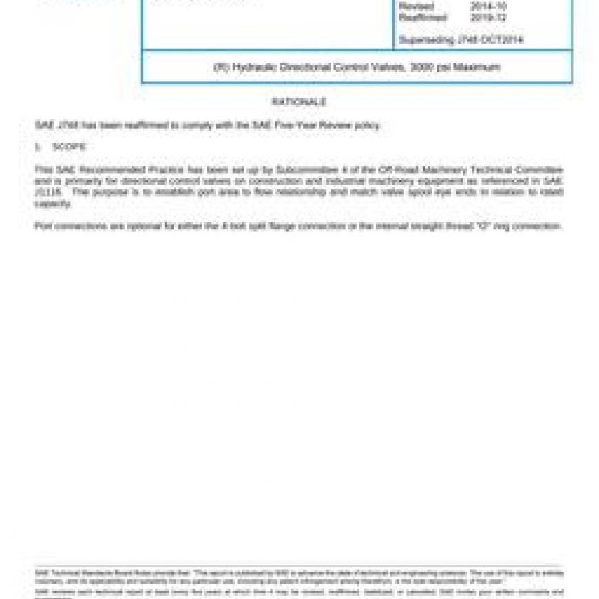 This SAE Recommended Practice has been set up by Subcommittee 4 of the Off-Road Machinery Technical Committee and is primarily for directional control valves on construction and industrial machinery equipment as referenced in SAE J1116. The purpose is to establish port area to flow relationship and match valve spool eye ends in relation to rated capacity. Port connections are optional for either the 4-bolt split flange connection or the internal straight thread "O" ring connection.