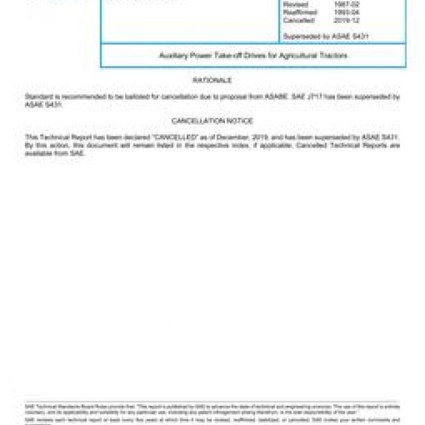 SAE J717_201912 Auxiliary Power Take-off Drives for Agricultural Tractors