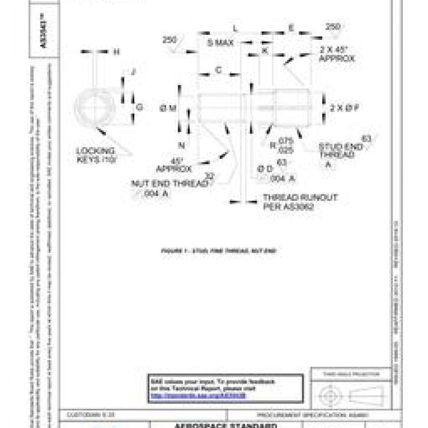 SAE AS3543B STUD, LOCKED IN, KEY LOCKED, UNS S66286, 140 KSI/1200 ¿¿F LIGHTWEIGHT, SELF-BROACHING KEYS