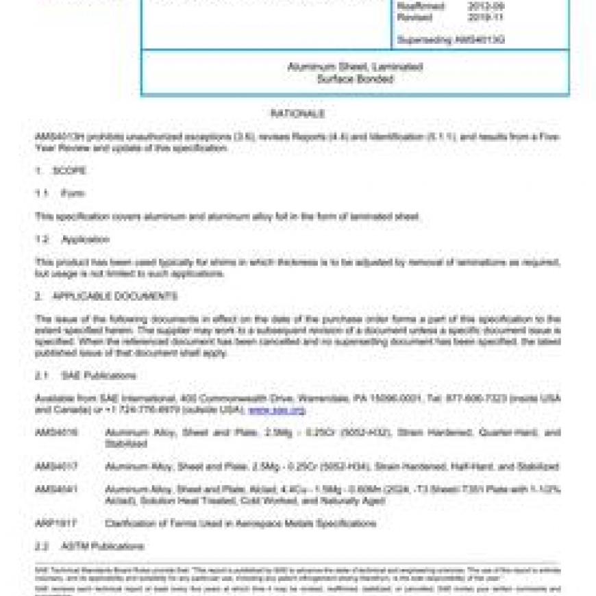 SAE AMS4013H Aluminum Sheet, Laminated Surface Bonded