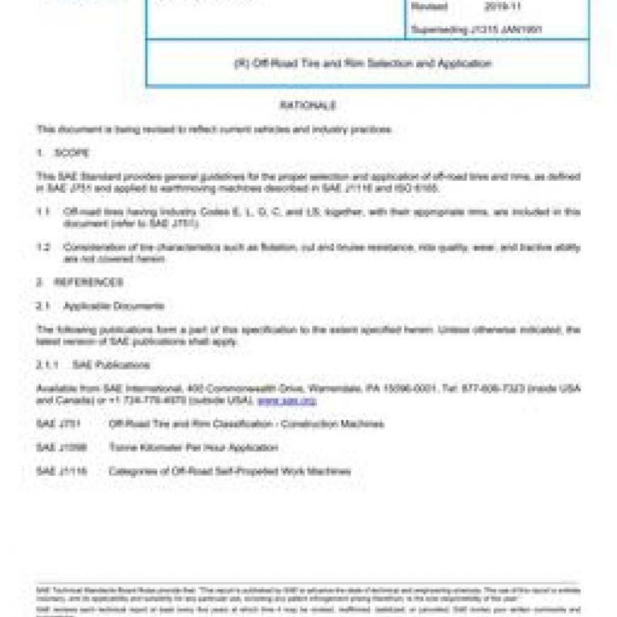 SAE J1315_201911 Off-Road Tire and Rim Selection and Application