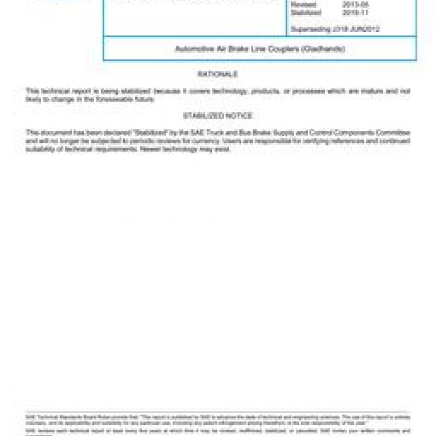 SAE J318_201911 Automotive Air Brake Line Couplers (Gladhands) (Stabilized: Nov 2019)