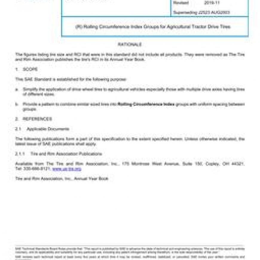 SAE J2523_201911 Rolling Circumference Index Groups for Agricultural Tractor Drive Tires