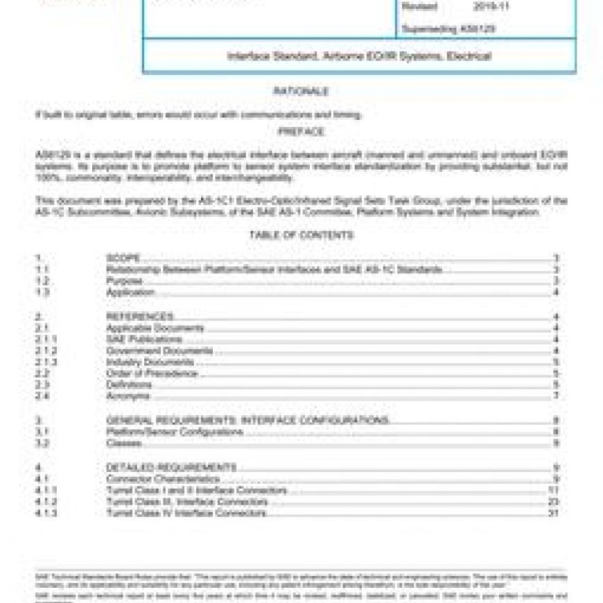 SAE AS6129A Interface Standard, Airborne EO/IR Systems, Electrical