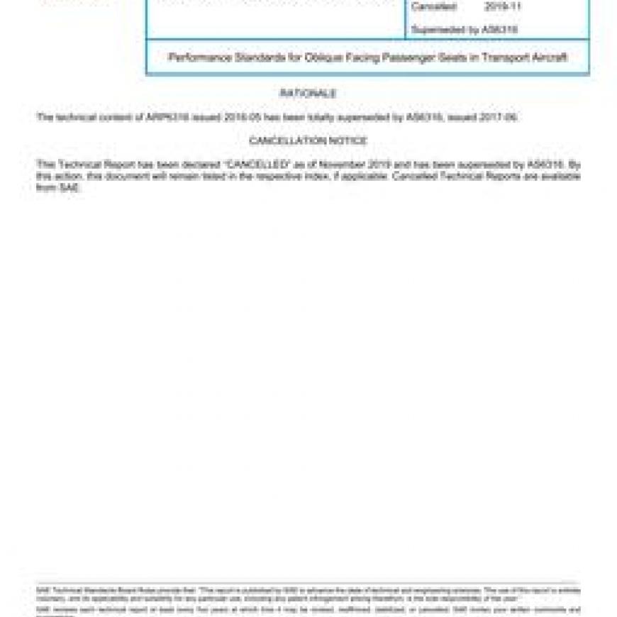 SAE ARP6316A Performance Standards for Oblique Facing Passenger Seats in Transport Aircraft