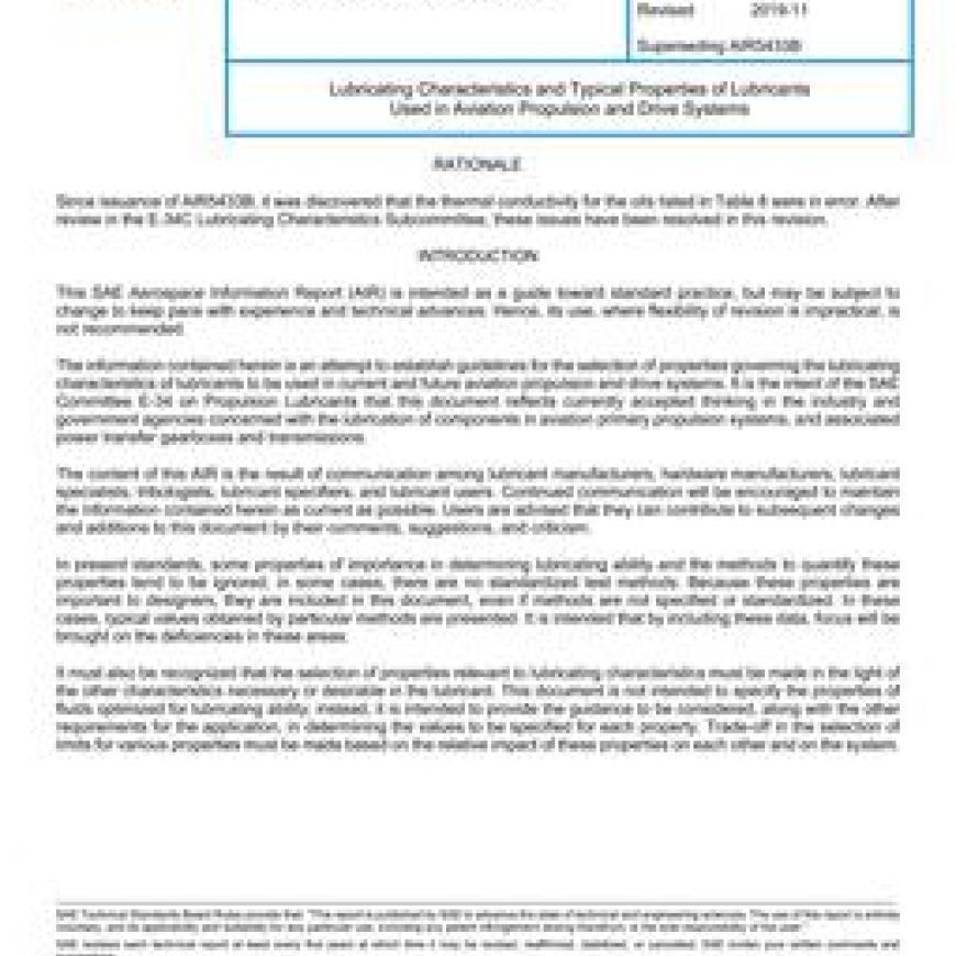 SAE AIR5433C Lubricating Characteristics and Typical Properties of Lubricants Used in Aviation Propulsion and Drive Systems