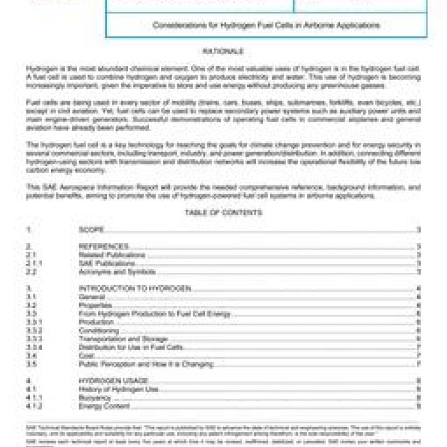 SAE AIR7765 Considerations for Hydrogen Fuel Cells in Airborne Applications