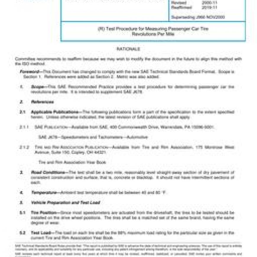 SAE J966_201911 Test Procedure for Measuring Passenger Car Tire Revolutions Per Mile