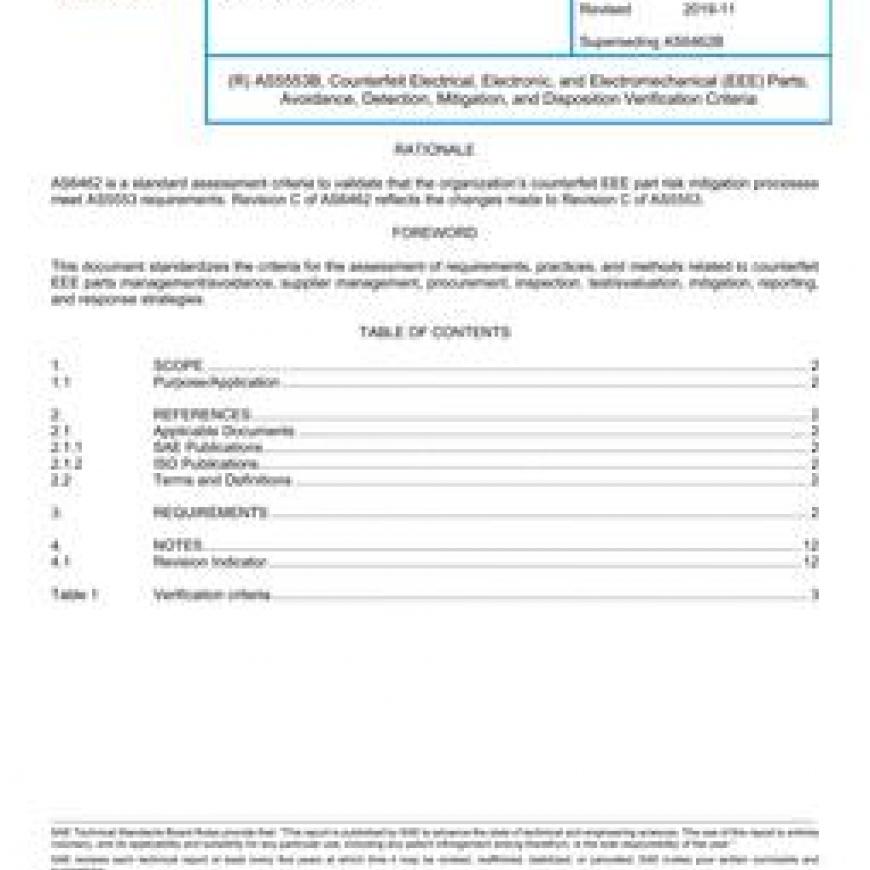 SAE AS6462C AS5553C, Counterfeit Electrical, Electronic, and Electromechanical (EEE) Parts; Avoidance, Detection, Mitigation, and Disposition Verification Criteria