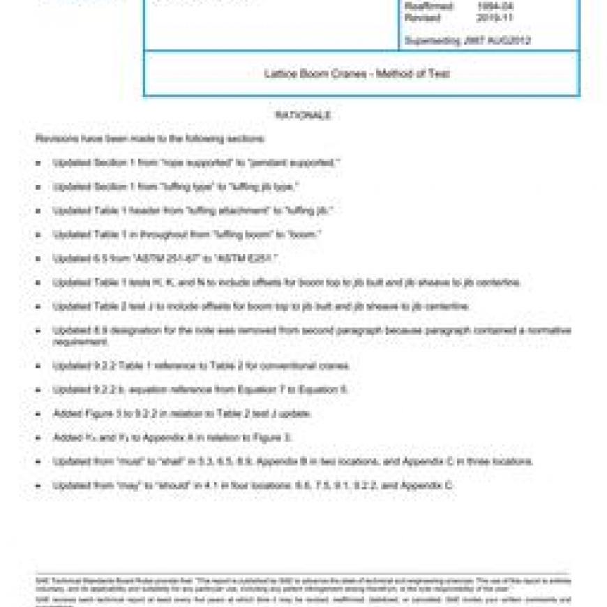 SAE J987_201911 Lattice Boom Cranes - Method of Test
