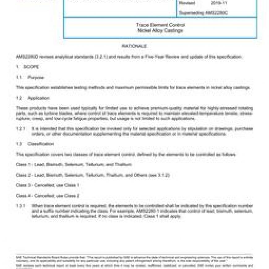 SAE AMS2280D Trace Element Control Nickel Alloy Castings