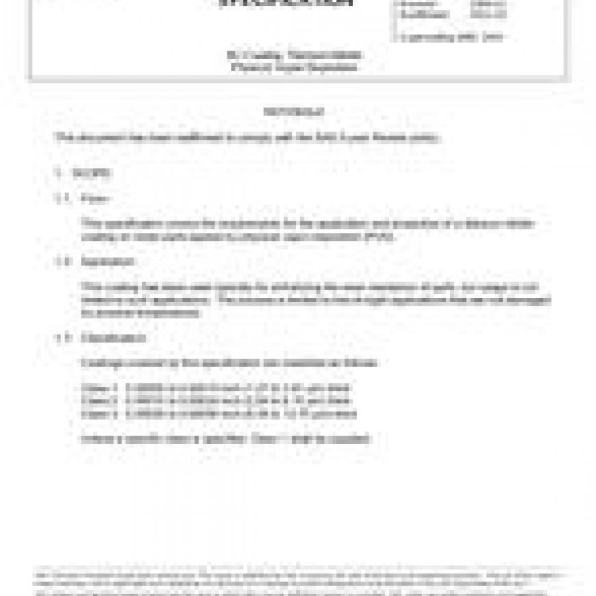 This specification covers the requirements for the application and properties of a titanium nitride coating on metal parts applied by physical vapor deposition (PVD).This coating has been used typically for enhancing the wear resistance of parts, but usage is not limited to such applications. The process is limited to line-of-sight applications on parts that are not damaged by elevated process temperatures.
