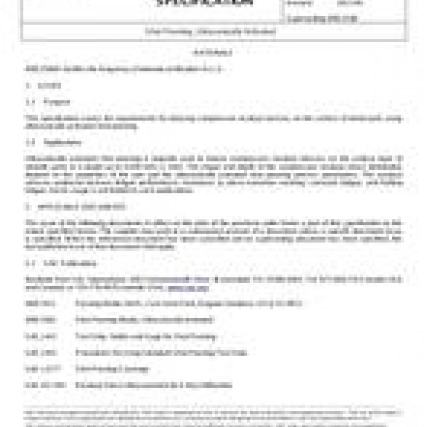 This specification covers the requirements for inducing compressive residual stresses on the surface of metal parts using ultrasonically activated shot peening.Ultrasonically activated shot peening is typically used to induce compressive residual stresses on the surface layer of metallic parts to a depth up to 0.040 inch (1 mm). The shape and depth of the compressive residual stress distribution depend on the properties of the part and the ultrasonically activated shot peening process parameters. The residual stresses produced increase fatigue performance, resistance to stress-corrosion cracking, corrosion fatigue, and fretting fatigue, but its usage is not limited to such applications.