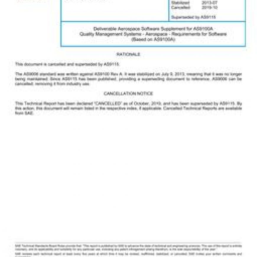 SAE AS9006B Deliverable Aerospace Software Supplement for AS9100A Quality Management Systems - Aerospace - Requirements for Software (Based on AS9100A)
