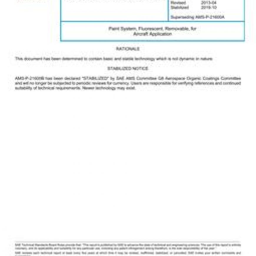 SAE AMSP21600B Paint System, Fluorescent, Removable, for Aircraft Application (Stabilized: Oct 2019)