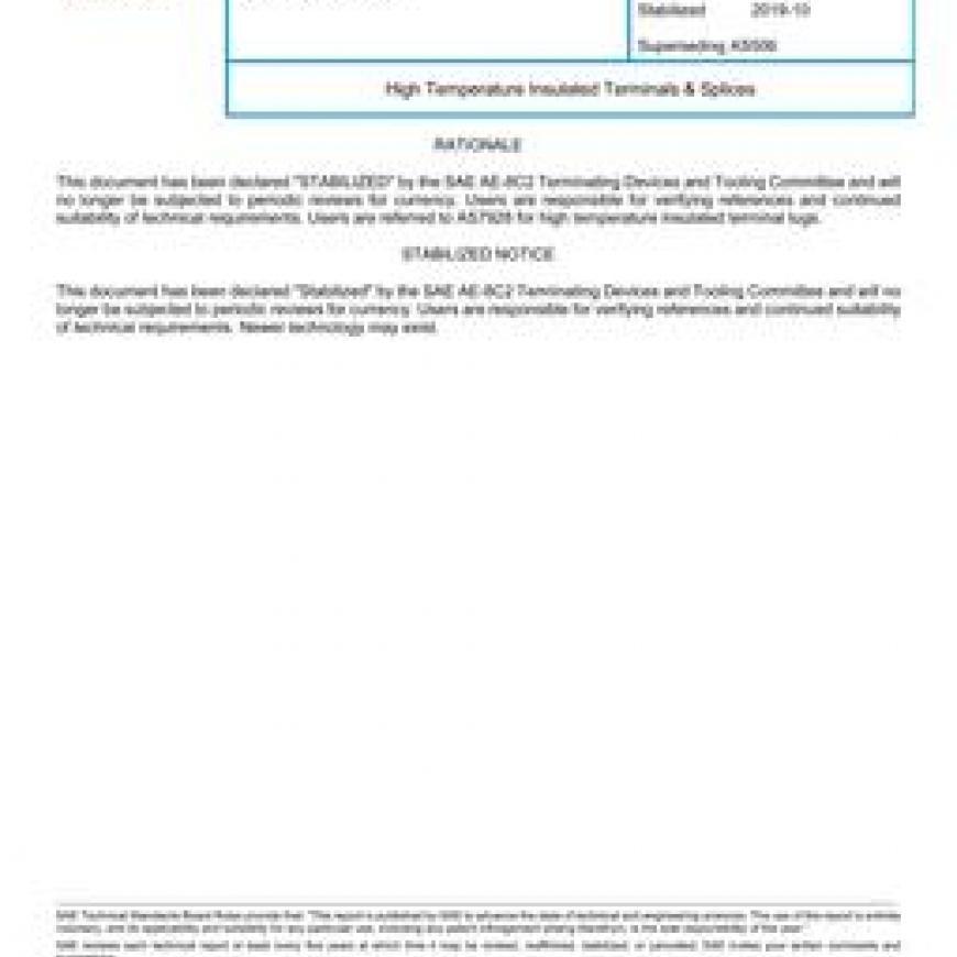 SAE AS506A High Temperature Insulated Terminals & Splices (Stabilized: Oct 2019)