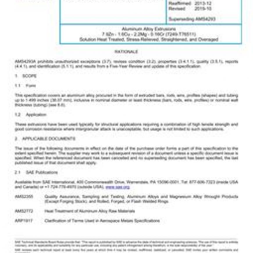SAE AMS4293A Aluminum Alloy Extrusions 7.9Zn - 1.6Cu - 2.2Mg - 0.16Cr (7249-T76511) Solution Heat Treated, Stress-Relieved, Straightened, and Overaged