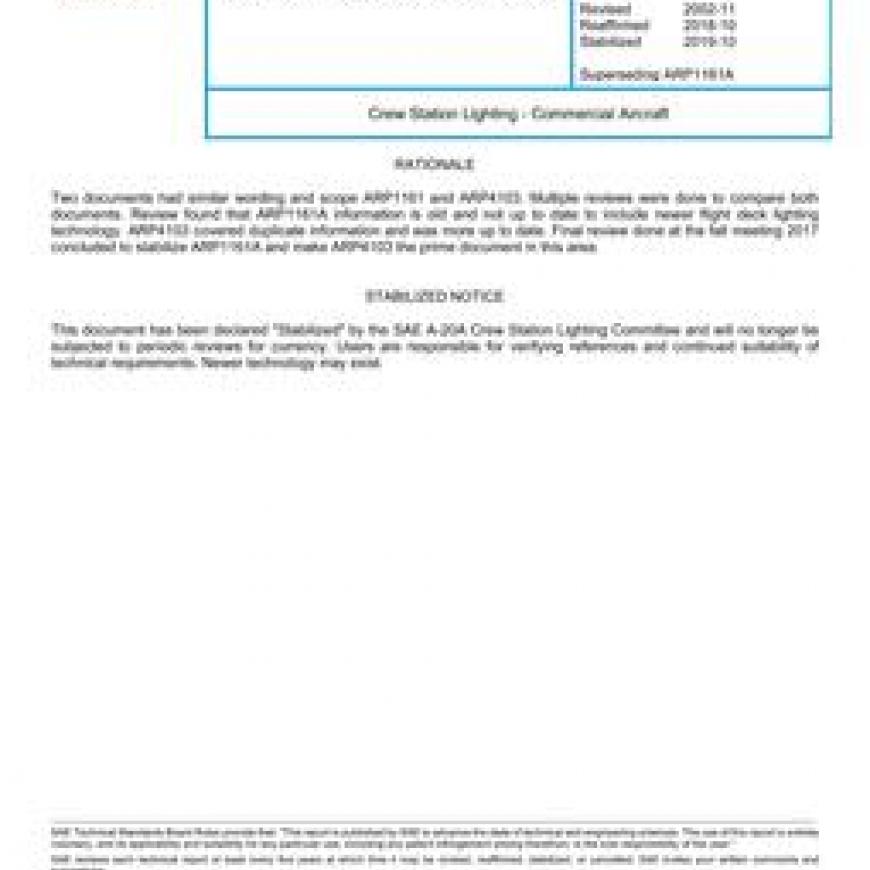 SAE ARP1161B Crew Station Lighting - Commercial Aircraft (Stabilized: Oct 2019)
