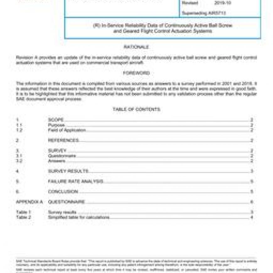 SAE AIR5713A In-Service Reliability Data of Continuously Active Ball Screw and Geared Flight Control Actuation Systems