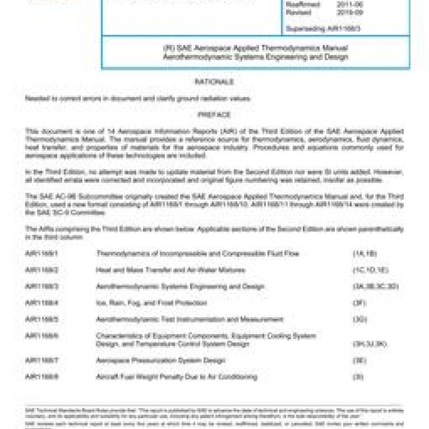 SAE AIR1168/3A SAE Aerospace Applied Thermodynamics Manual Aerothermodynamic Systems Engineering and Design