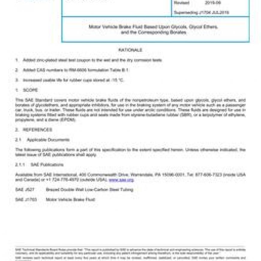 SAE J1704_201909 Motor Vehicle Brake Fluid Based Upon Glycols, Glycol Ethers, and the Corresponding Borates