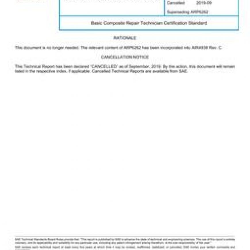 SAE ARP6262A Basic Composite Repair Technician Certification Standard