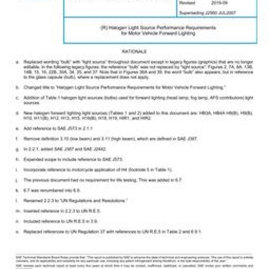 SAE J2560_201909 Halogen Light Source Performance Requirements for Motor Vehicle Forward Lighting