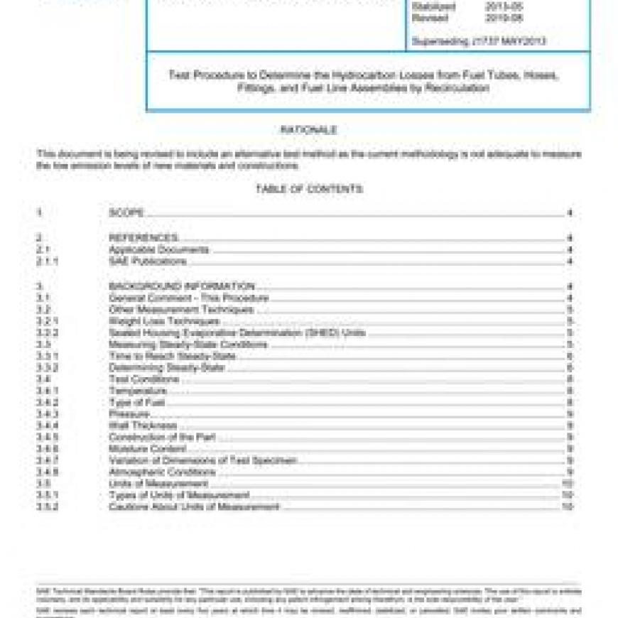 SAE J1737_201908 Test Procedure to Determine the Hydrocarbon Losses from Fuel Tubes, Hoses, Fittings, and Fuel Line Assemblies by Recirculation