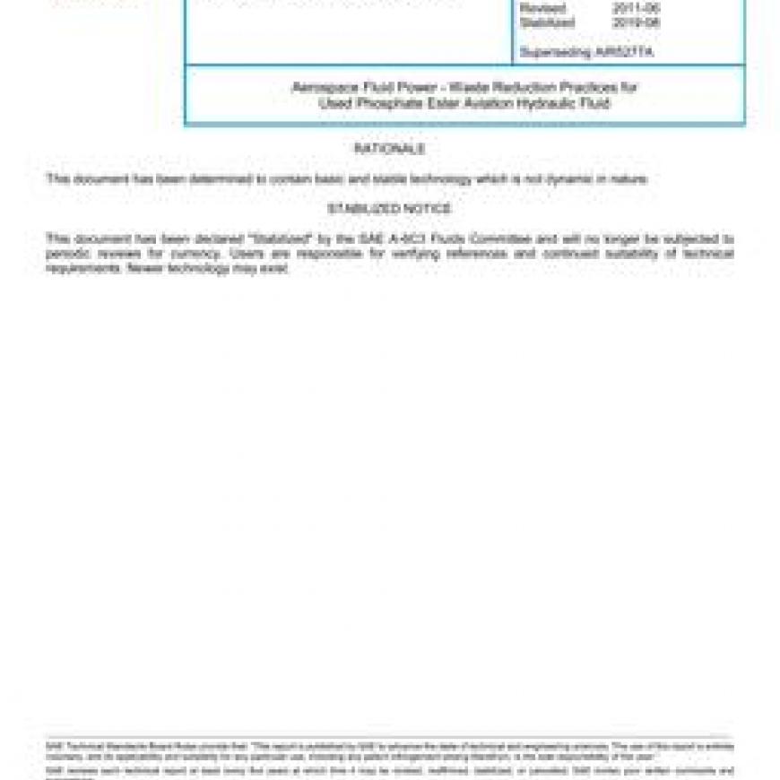 SAE AIR5277B Aerospace Fluid Power - Waste Reduction Practices for Used Phosphate Ester Aviation Hydraulic Fluid (Stabilized: Aug 2019)