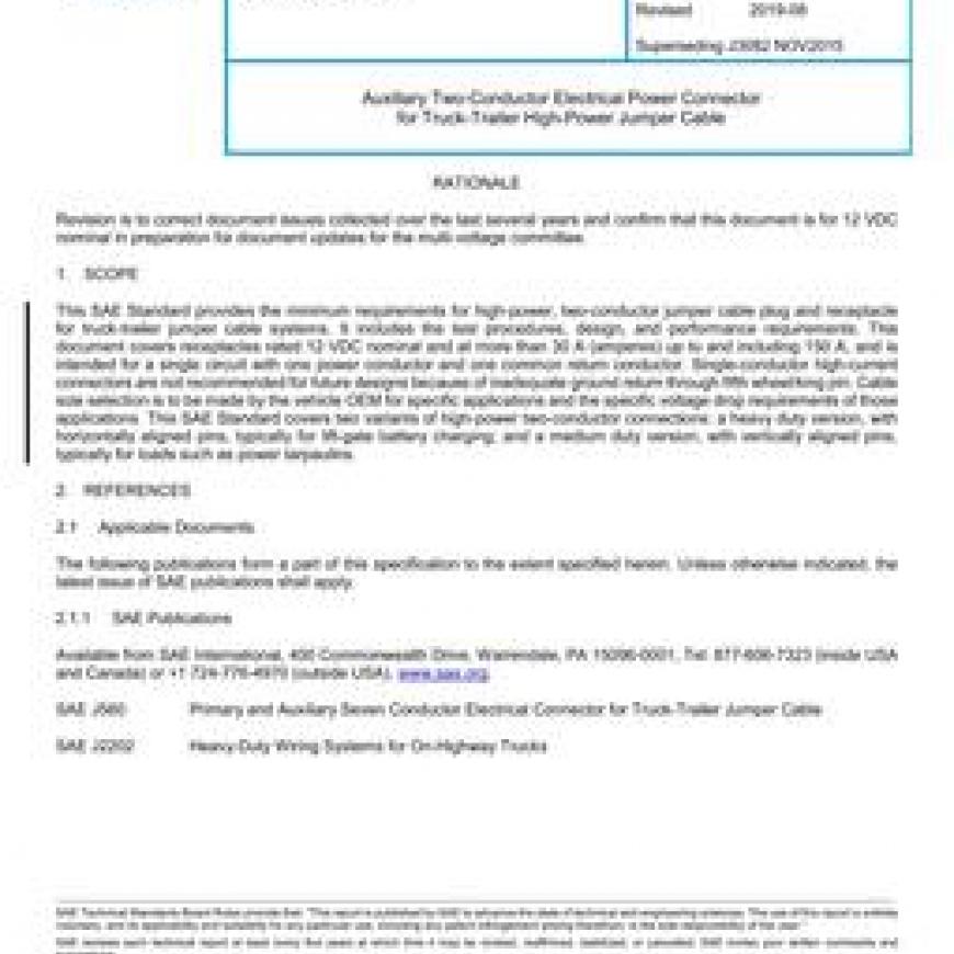 SAE J3082_201908 Auxiliary Two-Conductor Electrical Power Connector for Truck-Trailer High-Power Jumper Cable