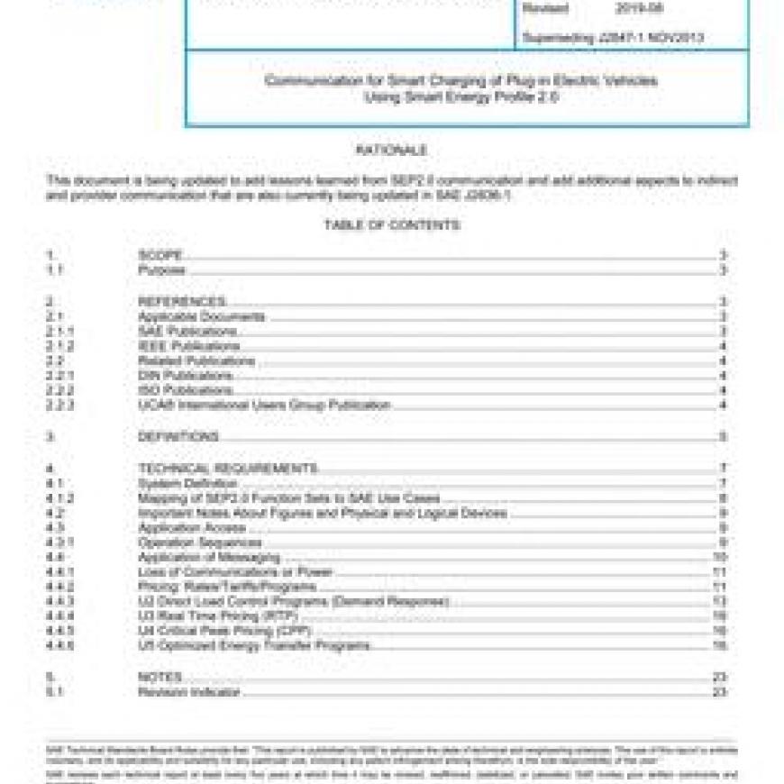 SAE J2847/1_201908 Communication for Smart Charging of Plug-in Electric Vehicles Using Smart Energy Profile 2.0
