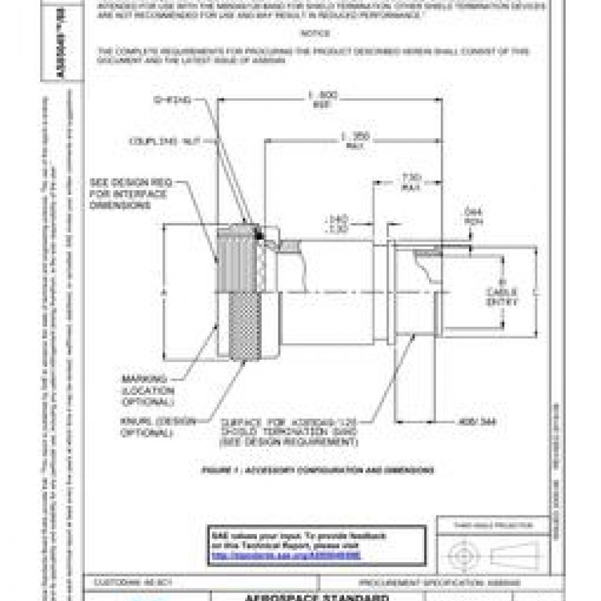 SAE AS85049/88E CONNECTOR ACCESSORIES, ELECTRICAL, BACKSHELL, STRAIGHT, SELF-LOCKING, SHIELD BAND TERMINATION (RFI/EMI), SHRINK BOOT ACCOMMODATION, CATEGORY 3B (FOR MIL-DTL-38999 SERIES III AND IV CONNECTORS)