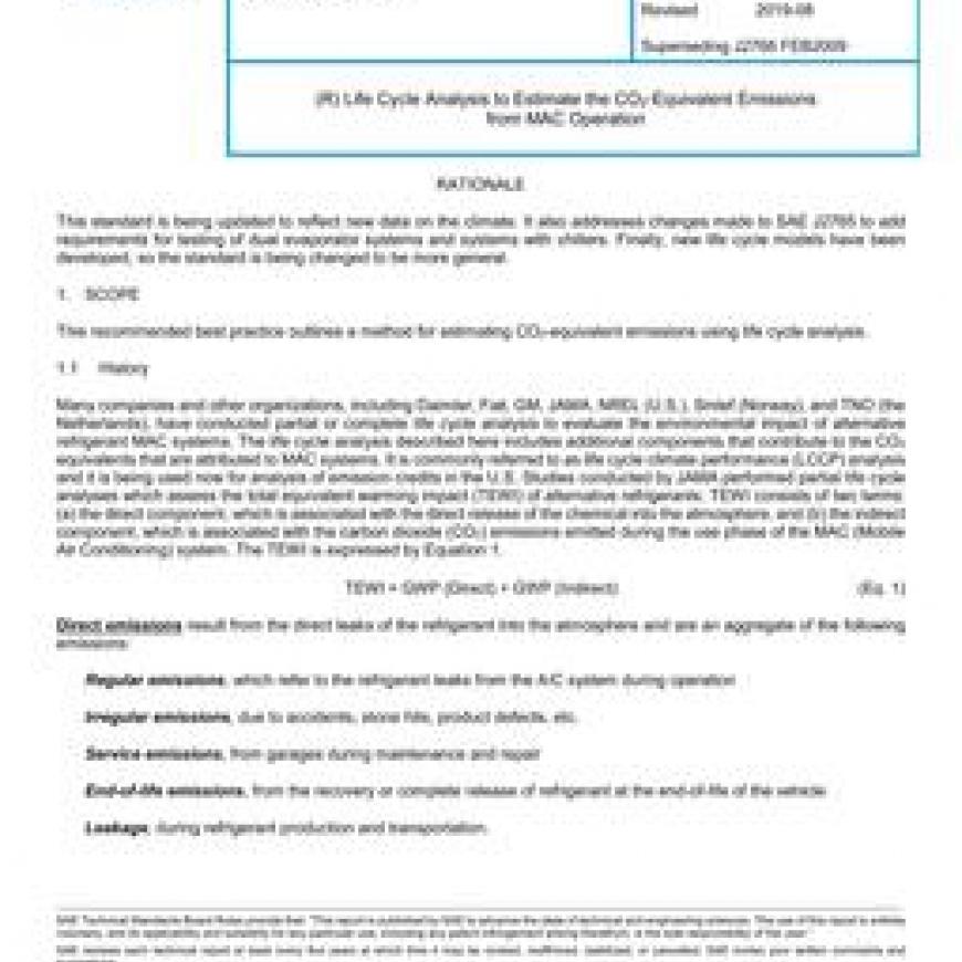 SAE J2766_201908 Life Cycle Analysis to Estimate the CO2-Equivalent Emissions from MAC Operation