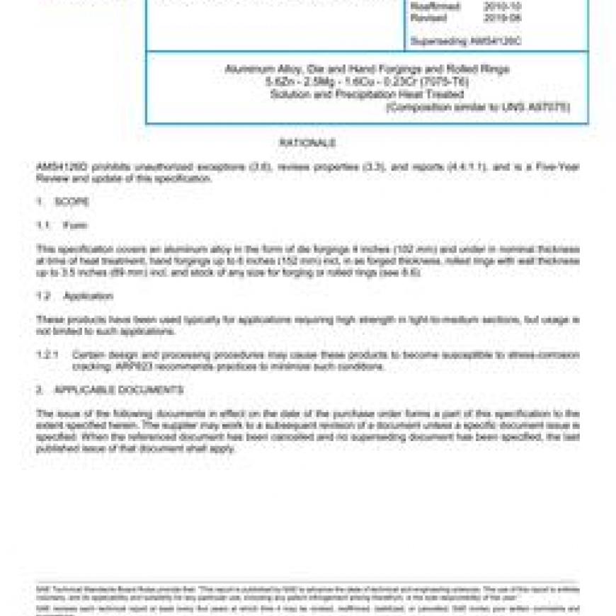 SAE AMS4126D Aluminum Alloy, Die and Hand Forgings and Rolled Rings 5.6Zn - 2.5Mg - 1.6Cu - 0.23Cr (7075-T6) Solution and Precipitation Heat Treated