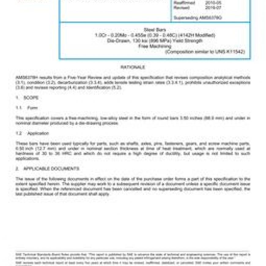 This specification covers a free-machining, low-alloy steel in the form of round bars 3.50 inches (88.9 mm) and under in nominal diameter produced by a die-drawing process.