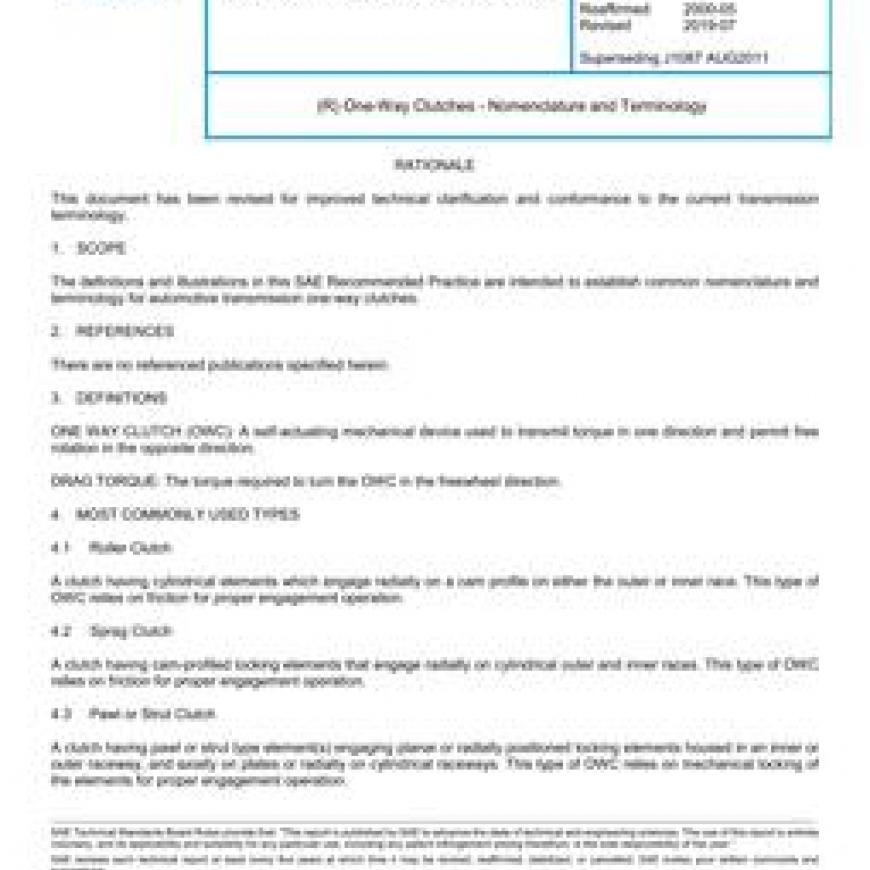 SAE J1087_201907 One-Way Clutches - Nomenclature and Terminology