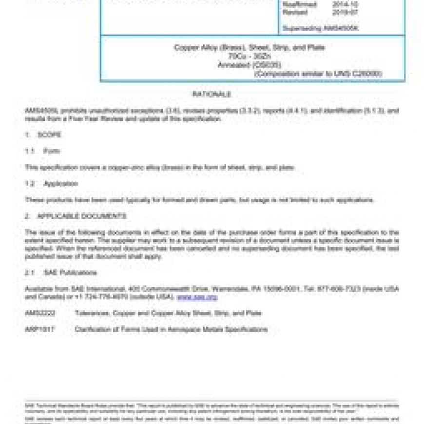 SAE AMS4505L Copper Alloy (Brass), Sheet, Strip, and Plate 70Cu - 30Zn Annealed (OS035)