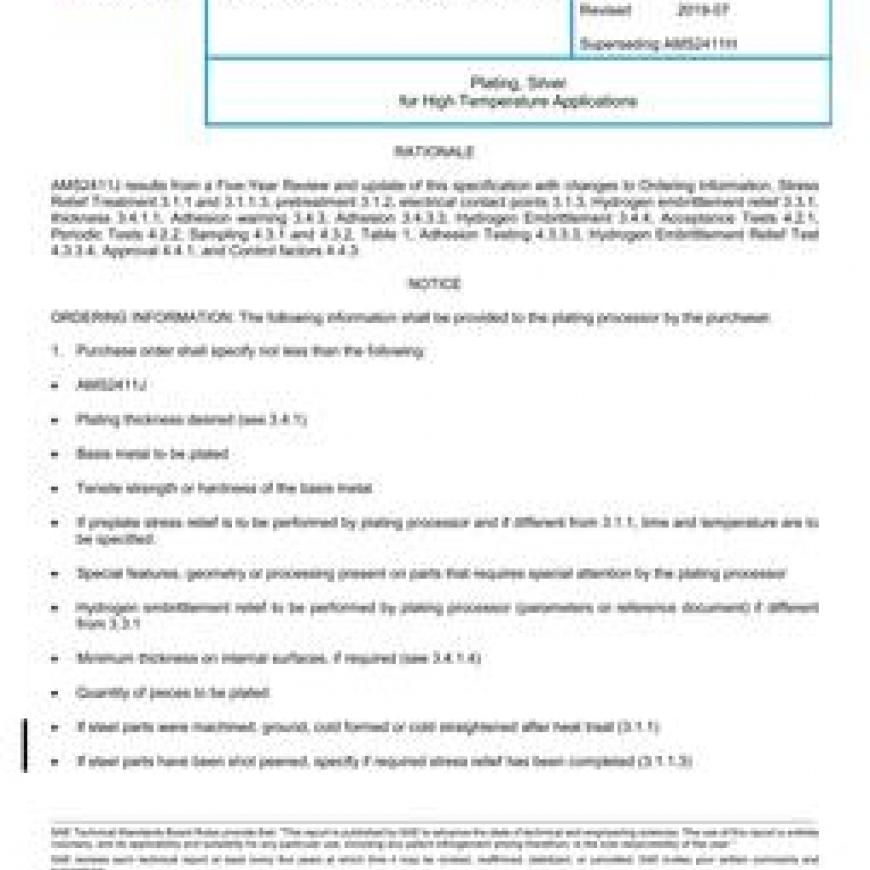 SAE AMS2411J Plating, Silver for High Temperature Applications