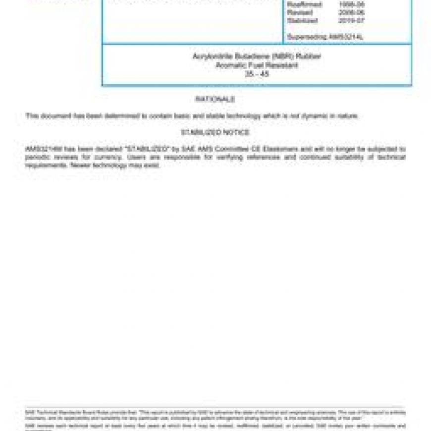 SAE AMS3214M Acrylonitrile Butadiene (NBR) Rubber Aromatic Fuel Resistant 35 - 45 (Stabilized: Jul 2019)
