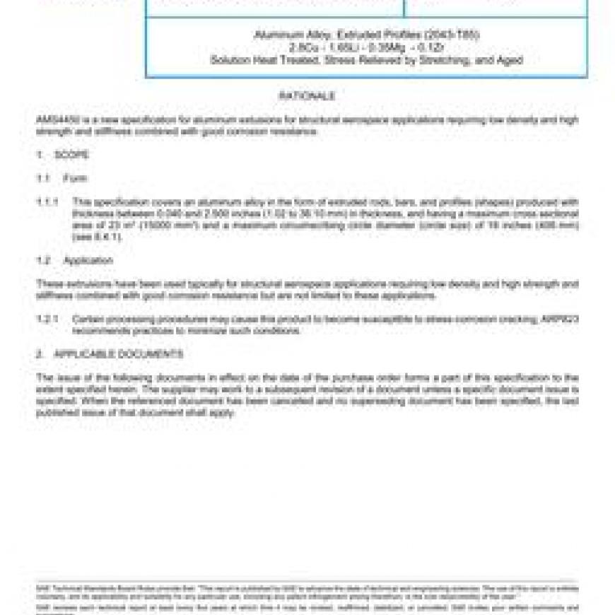 This specification covers an aluminum alloy in the form of extruded rods, bars, and profiles (shapes) produced with thickness between 0.040 and 2.500 inches (1.02 to 38.10 mm) in thickness, and having a maximum cross sectional area of 23 in2 (15000 mm2) and a maximum circumscribing circle diameter (circle size) of 16 inches (406 mm) (see 8.4.1).
