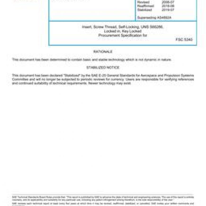 This procurement specification covers inserts made from A286 alloy of the type identified under the Unified Numbering System as UNS S66286 which have self-locking internal threads and integrated locking keys to positively secure the insert against rotation when properly installed in threaded holes.