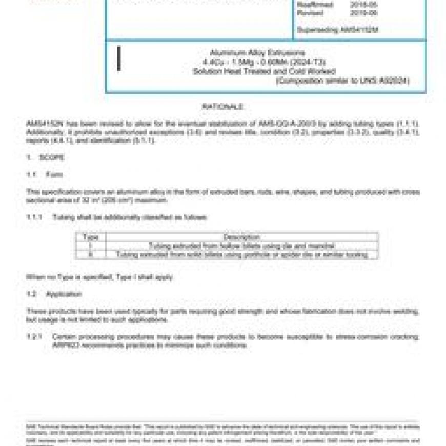 SAE AMS4152N Aluminum Alloy Extrusions 4.4Cu - 1.5Mg - 0.60Mn (2024-T3) Solution Heat Treated and Cold Worked